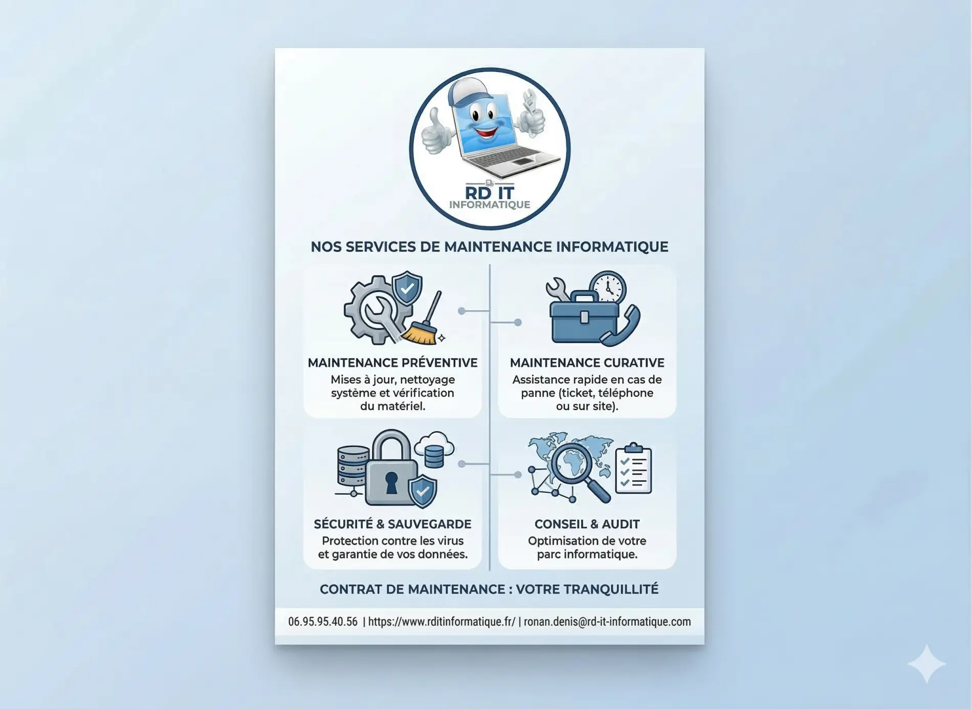 Chez RD IT Informatique, nous plaçons la proximité et la fiabilité au cœur de notre métier. Que vous soyez un particulier à Goven ou un professionnel sur le secteur de Rennes et du canton de Guichen, nous intervenons rapidement pour redonner vie à vos équipements ou vous proposer le matériel le plus adapté à vos besoins.